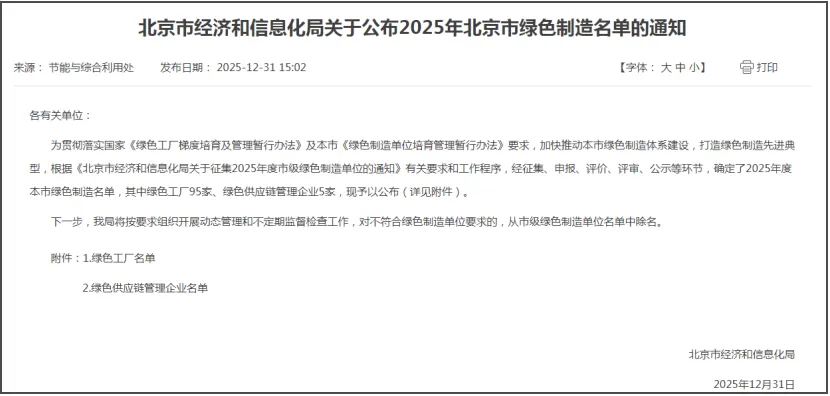 刚过去的12月,享界汽车销量首次突破万辆,稳居30万以上豪华新能源轿车销量冠军。很多用户都在好奇:这匹黑马凭什么?是设计惊艳?还是智能领先?这些都没错,但或许还有一个更深的原因——好车离不开好产地。就在不久前,北京市经济和信息化局正式公布2025年度绿色制造名单,北京新能源汽车股份有限公司位于密云区的享界超级工厂成功获评“北京市绿色工厂”。